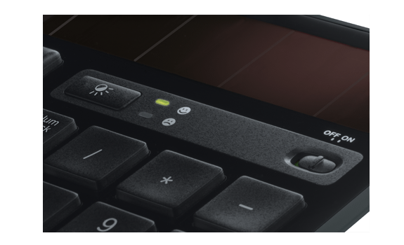 Good-bye, battery hassles. Solar power keeps your keyboard charged and ready—even indoors.