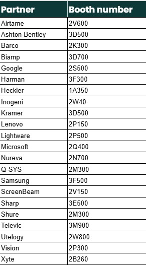Also, be sure to check out Appspace, Comeen, Dell, Extron, Google Workspace/Google Meet, Heckler, Microsoft, Neomounts, Q-SYS, Samsung, UrbenTech, and Zoom products on display in the Logitech booth 2M300.