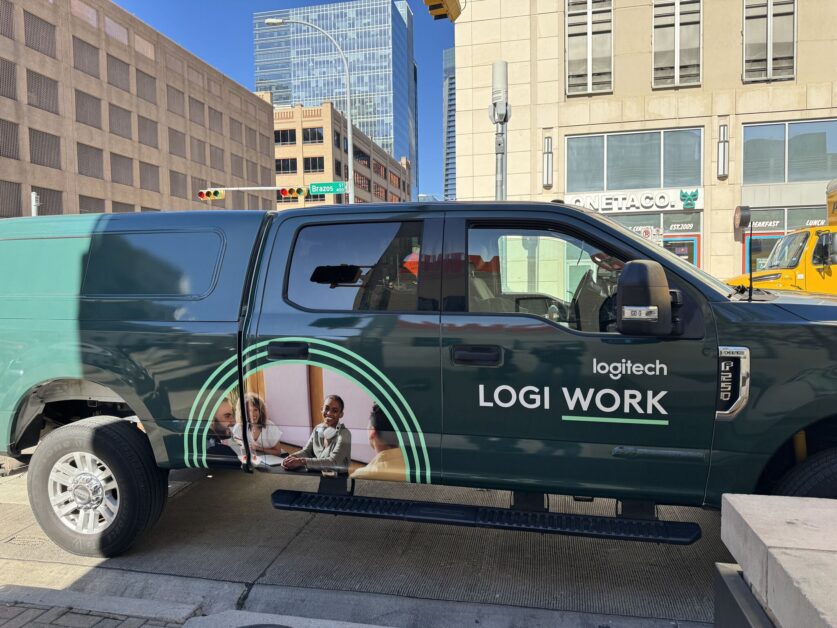 Two blocks down, nestled among the iconic Austin food trucks, the Logi Work on Wheels showcase took the brand on the road. Parked next to the mobile product showcase trailer was the Mega Mouse: a larger-than-life reconstruction of the new flagship MX Master 4.