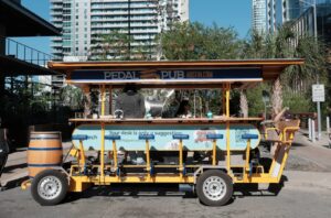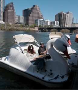We outfitted Pedal Pubs, food trucks, and even a swan boat on Lady Bird Lake with full Logitech setups. We saw a reporter from Rolling Stone catching a ride on the Pedal Pub and a Mashable writer filing from the water on a Swan Boat.